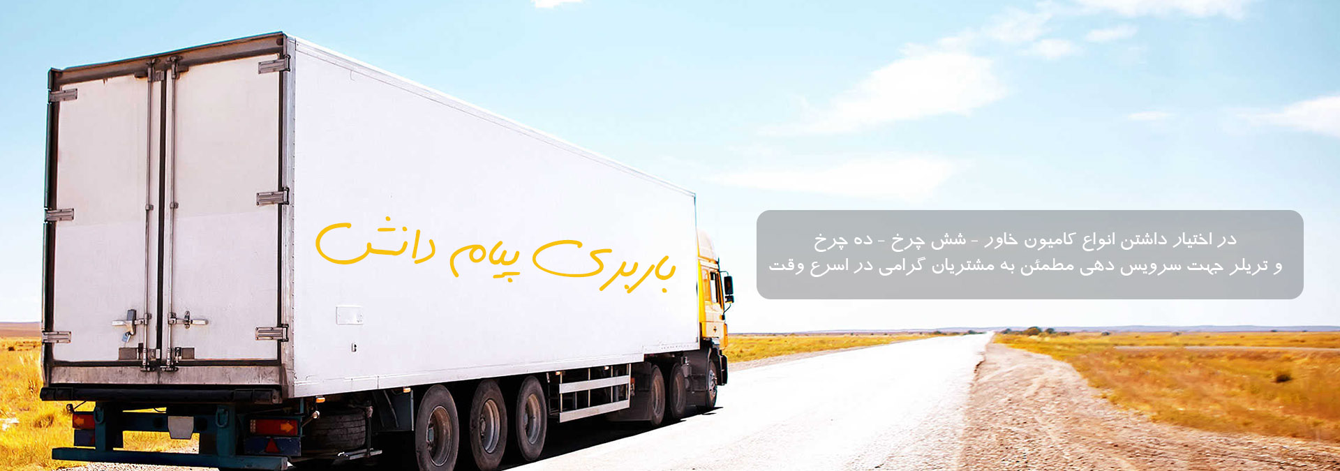 1-در اختیار داشتن انواع کامیون خاور – شش چرخ – ده چرخ و تریلر جهت سرویس دهی مطمئن به مشتریان گرامی در اسرع وقت .